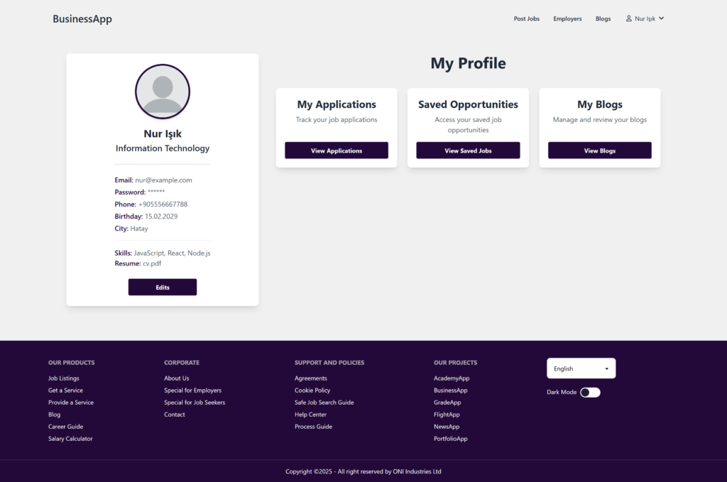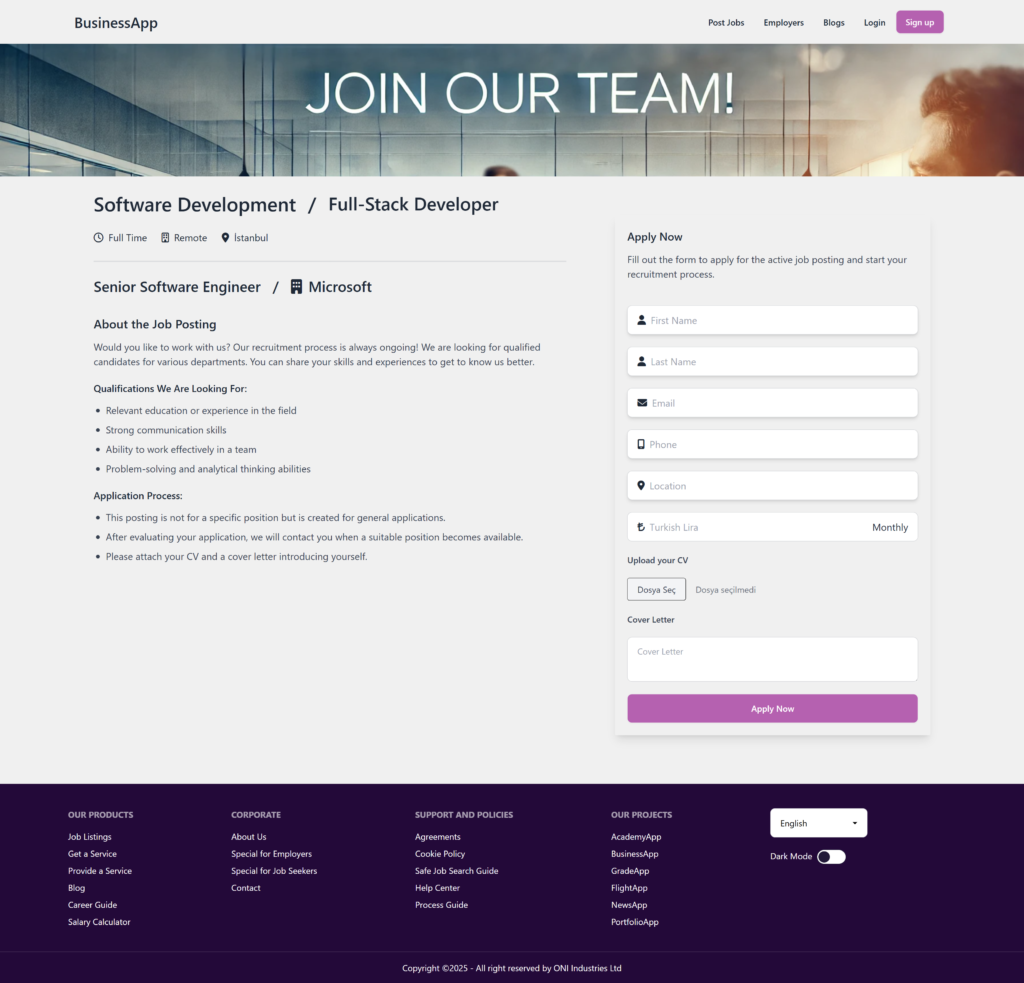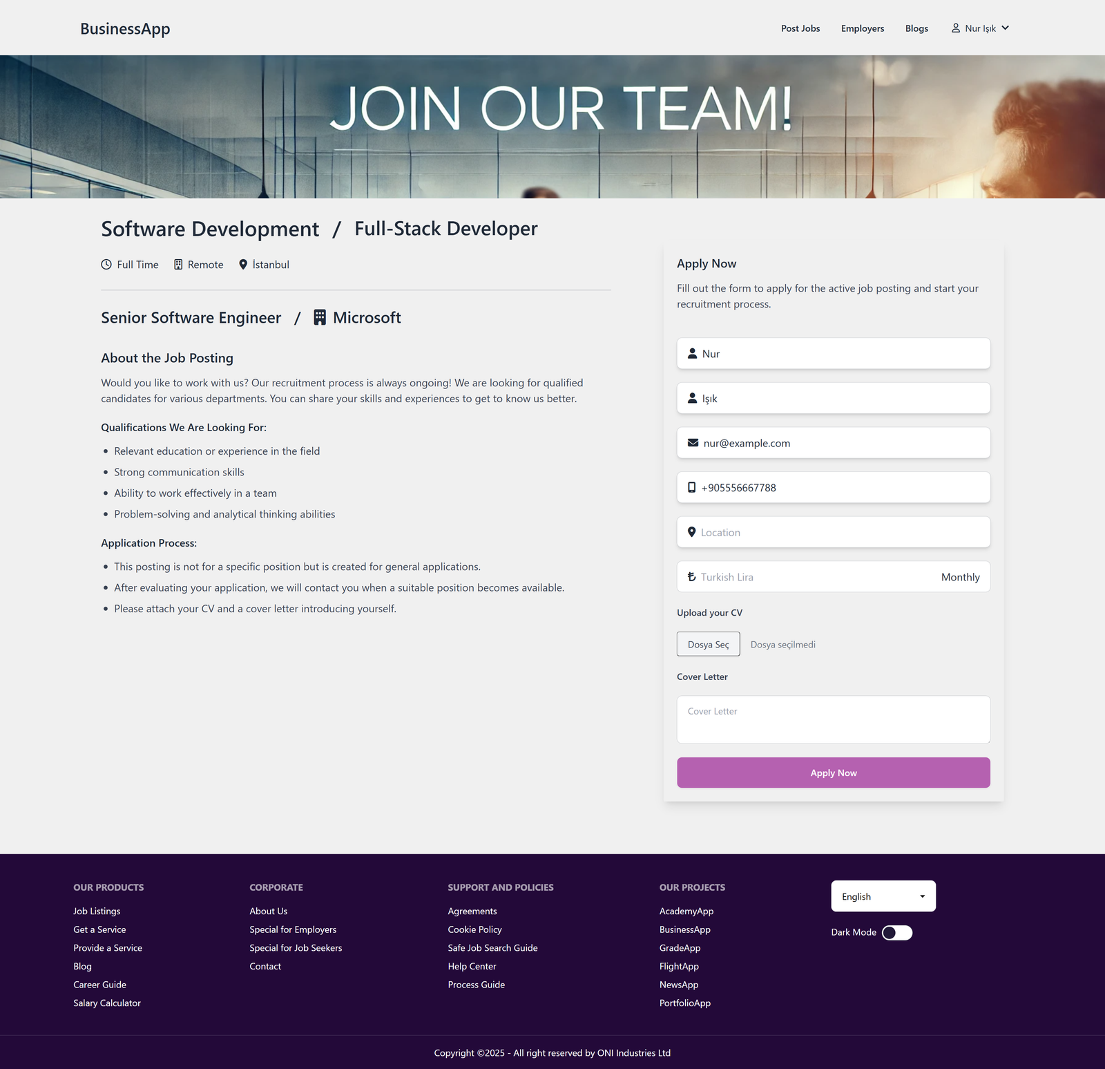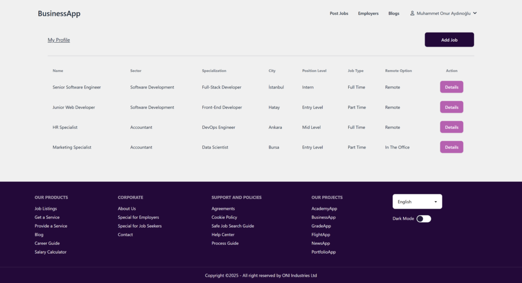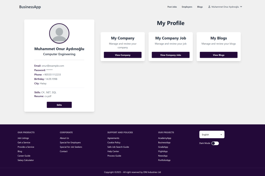 Github Link: https://github.com/onuraydinoglu/BusinessApp