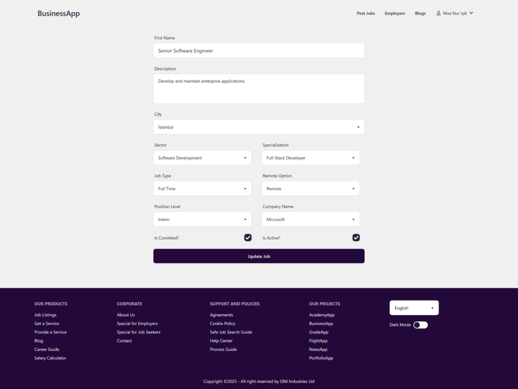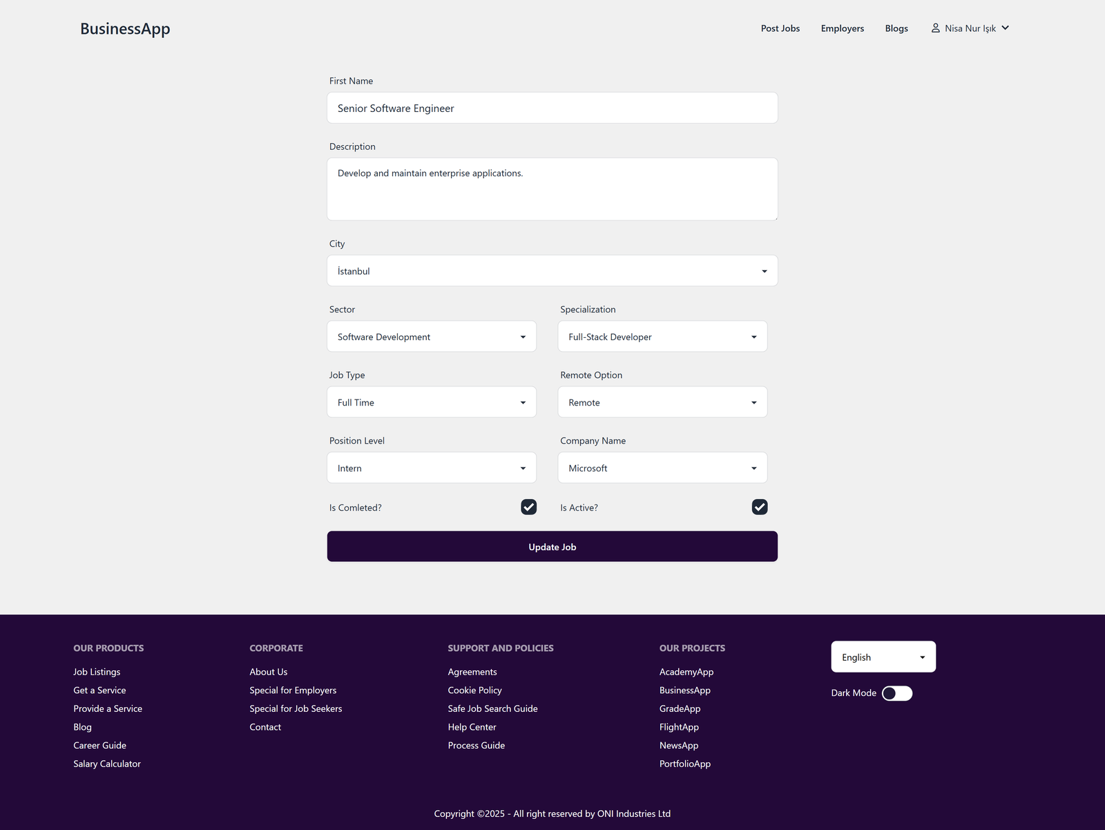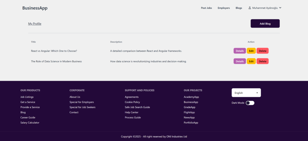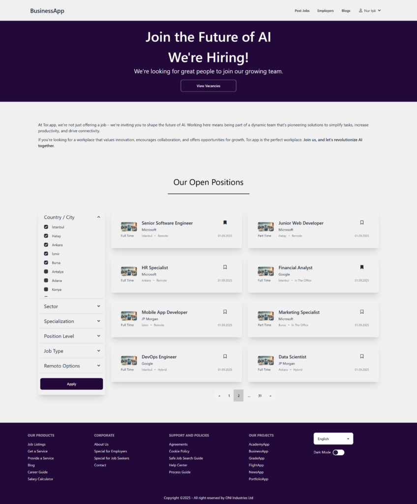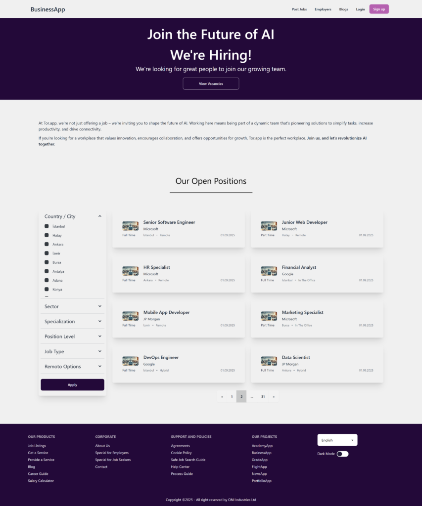 Github Link: https://github.com/onuraydinoglu/BusinessApp